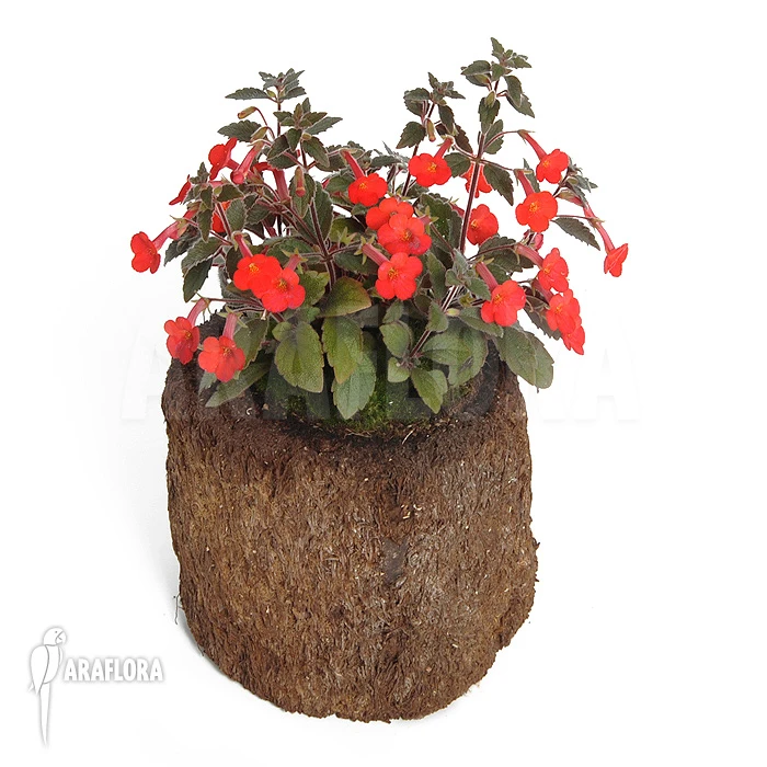 In summer the Achimenes erecta (m) will thrive on a terrace or balcony. All through the year it is the perfect house-plant. The Achimenes erecta is native to South America. Its leaves are dark-green and serrated. When the Achimenes erecta is in bloom, it produces trumpet-shaped, orange flowers. Araflora sells many variants of the Achimenes erecta, each with a different colour or shape.