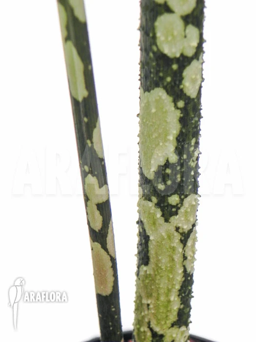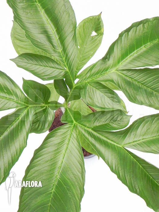 Amorphophallus paeoniifolius is a tropical tuber plant that flowers first and only then produces leaves. Its inflorescence consists of a spathe inside which is a spadix, the spike or cob made up of male and female flowers. The upper section of this spike is a large round purple bud unlike other species where it is more pointed. The leaves look not unlike those of a peony, hence the plant’s name. The flowers emit an unpleasant putrid smell for the first few days after they open.