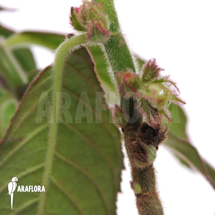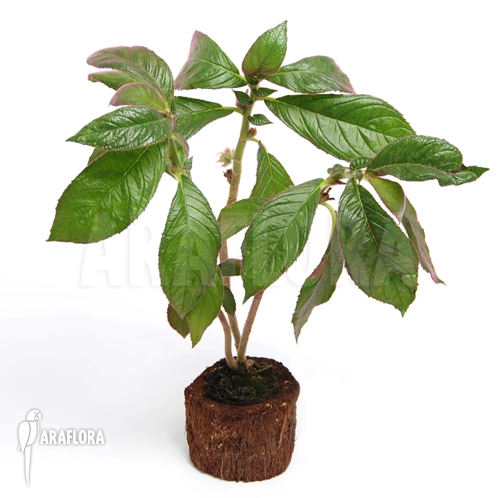 The exotic plant, Columnea sanguine is native to Costa Rica and Panama. Its leaves are oval-shaped and glossy on the outside. They are light-green with a reddish-brown spot. Its flowers are orange-coloured and without scent. The Columnea sanguine thrives indoors at home or in the office. Araflora also sells ‘Xaxim [treefern]’ containers for this plant.