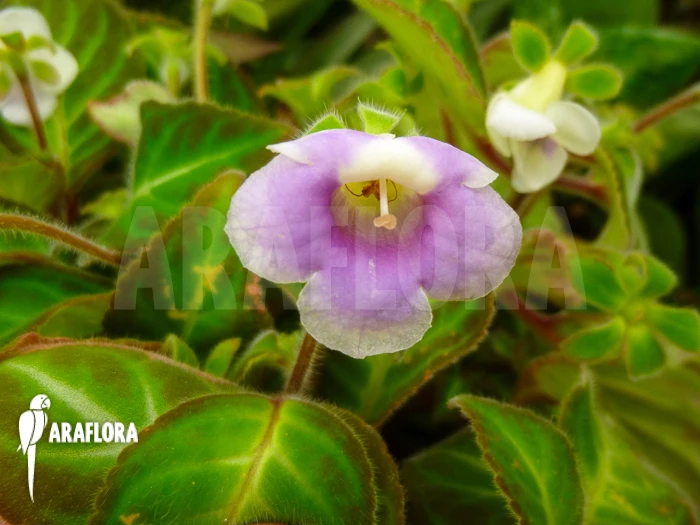 It is a beautiful, tropical plant native to the Andes mountains in South America. The leaves are deep-green with alight-green pattern across the veins. The plant has small hairs on its leaves. The flowers are white with purple; the seeds are enclosed in special capsules. The whole year round the Gloxinella lindeniana will thrive at home or in the office.