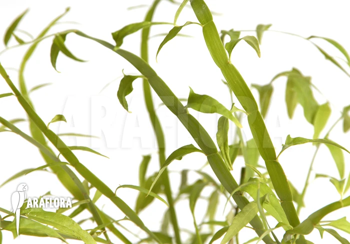 The stems of Homalocladium the Ribbon bush or tapeworm plant have widened and taken over the function of the leaf. Leaves are rare and unremarkable. The flowers are not spectacular either, but the fact that they appear on the sides of the “leaf”, the widened branches, is special and a bit bizarre. The plant is green all year round; the young shoots that are easily formed are bright green.