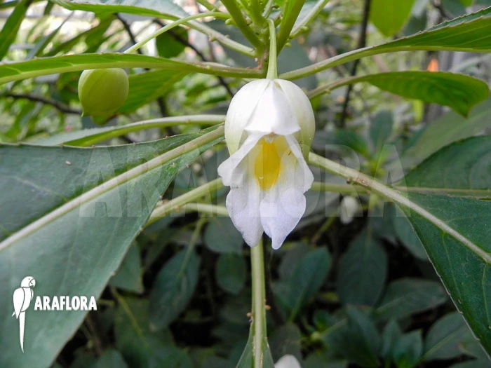 Impatiens kerriae is a subtropical plant from the Balsam family. Mature plants could form a small shrub, often not higher than 50 cm. The species produces a thick, bottle shaped succulent stem that is better known as a caudex. The caudex could grow out to a diameter of around 10 cm. Leaves form at the end of the stems and are fresh green. In between the leaves, white flowers are formed. Flowers are bag-shaped and could show yellow or orange spots in the center. Similar to many other species within this family, fruits could ‘explode’ as seed dispersal mechanism. This plant is propagated by cuttings or harvesting and sowing seeds