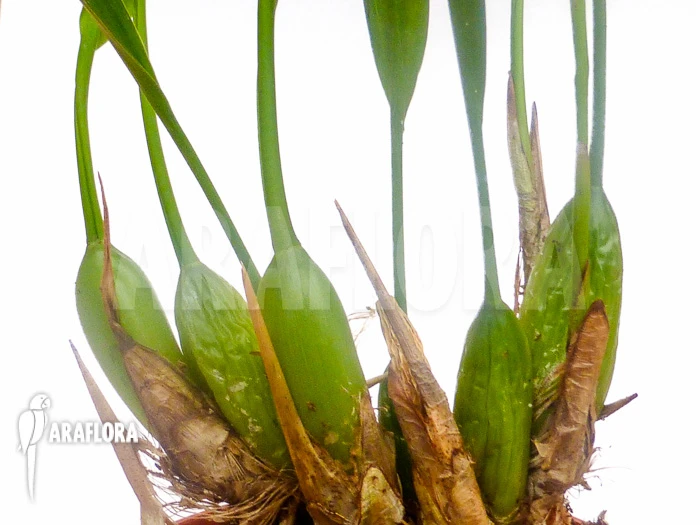 Dendrochilum filiforme is found on the Philippine islands Luzon and Visayas, where it grows on trees. So at your home it should also be kept in a hanging or high pot to give the strands the space they need to hang. Reaching lengths of 20 centimetre it can hold dozens of flowers on each strand, which can require a bit of support. The slender leaves reach around 10 centimetre and grow from bulbs. Dendrochilum filiforme spreads a strong, pleasant scent.