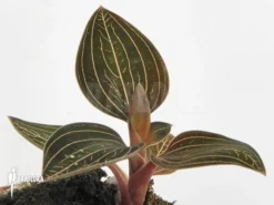 Amongst other places, Ludisia discolor is found in Indonesia, at altitudes ranging from 500 to 1000 m. The orchid is adapted to tropical temperatures (22-28 degrees Celsius at night). The most striking about Ludisia discolor is the venous dark green leaf, that has a velvety touch. The veins can be either pink or a silvery white . The flowers are always white with a yellow accent in the center
