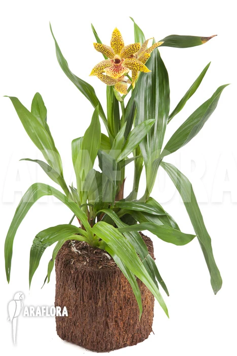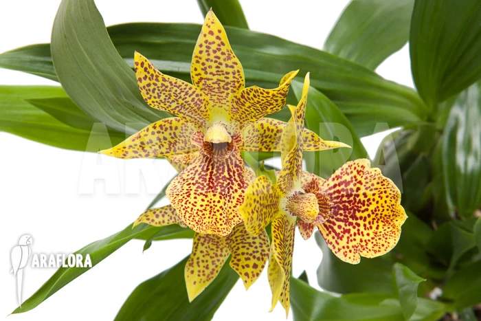 The Propetalum Golden Bay is a cross between de Promenea and the Zygopetalum. The impressive flowers, which bloom in fall and winter, are small but have a beautifully detailed marking. The flowers have a bright yellow color which almost appears golden, hence its name. If you ask Araflora, this orchid will be an amazing and bright addition to your collection.