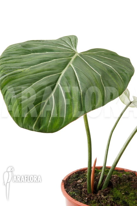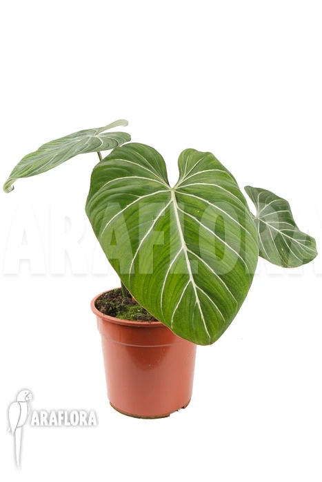 The Philodendron gloriosum has glossy-green leaves with distinctive yellow veins. This green house plant thrives in office or living room. The plant is native to Columbia and various other countries. The leaves grow in a rolled-up shape, which finally unrolls into a large leaf. Araflora sells various types of green plants for home and office.