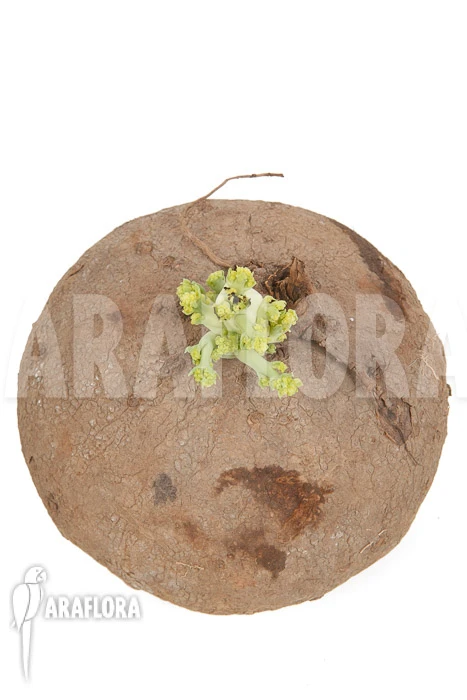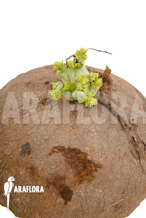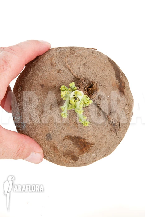The Stephania erecta is a tropical caudexplant. It originally grows in Thailand and Australia and thrives under high humidity. The plant has beautiful, round leaves with subtle light green veins. The round leaves show a lot of similarities to the leaves of the Pilea peperomioides.