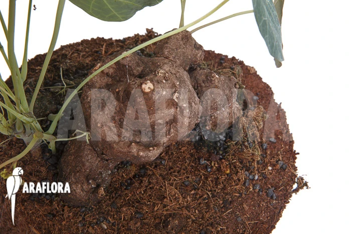 The Stephania Nova (‘nova’ meaning new) is a new species of Stephania which hasn’t been assigned its botanical name yet. This plant is originally found on the limestone cliffs in Thailand, which makes it hard to get ahold of the plant. Other than its family member the Stephania erecta, the nova has beautiful, big leaves with obvious veins. This Stephania nova is available at Araflora in very limited numbers, so be quick to add this caudex to your collection!