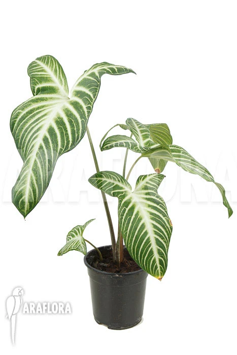 Xanthosoma lindenii’ can grow up to one and a half meters high, with beautiful large leaves that follow each other nicely so you don’t look at leafless stems. The colour can vary from a fresh light green to a deep dark green, dependiing how much light the plant receives.